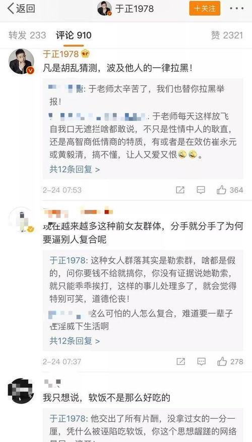 对于网友们的质疑,于正也在直播中做出了回应。他表示:“这个视频是真实的,我并没有对其进行任何剪辑。至于为什么要爆料,是因为我觉得这个男艺人的行为确实有些过分,我希望通过这个视频,让大家都能看到他的真实面目。”